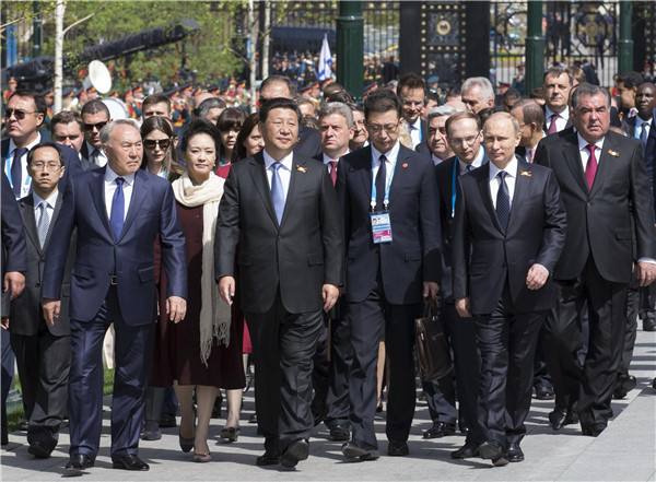 2015年5月8日,习近平抵达俄罗斯首都莫斯科,开始访问俄罗斯,并出席俄罗斯纪念卫国战争胜利70周年庆典。
