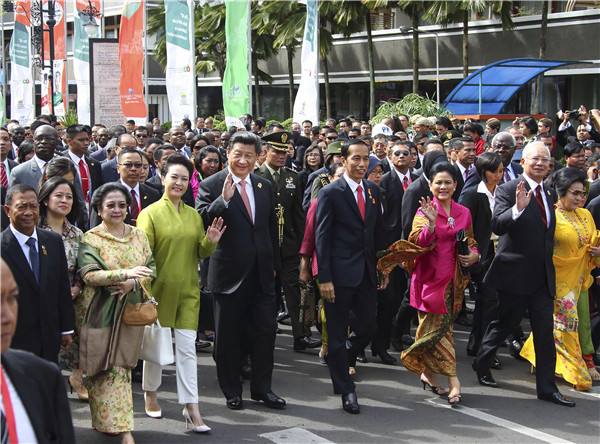 2015年4月21日,习近平主席再次来到印尼,应印度尼西亚共和国总统佐科邀请出席亚非领导人会议和万隆会议60周年纪念活动。