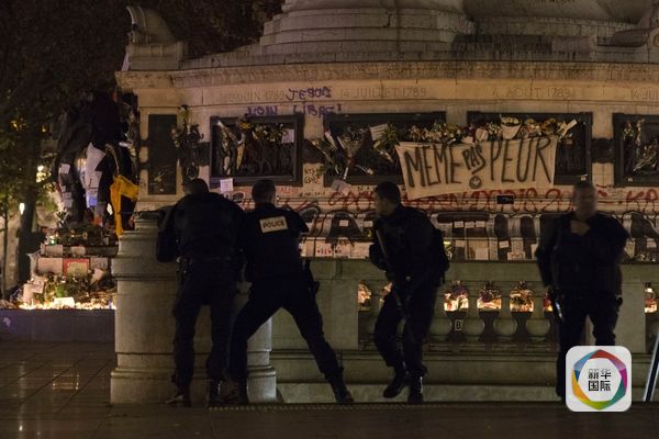 11月15日,法国警察在巴黎共和国广场警戒。(图片来源:新华/法新)