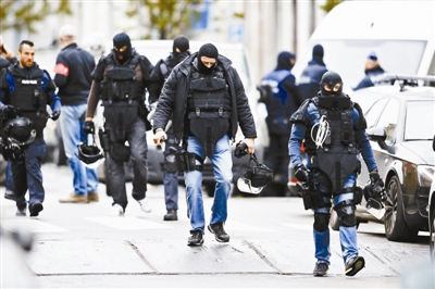 11月16日,在比利时首都布鲁塞尔莫伦贝克区,比利时警方对巴黎恐袭嫌疑人的搜捕行动结束 摄影/新华社记者 叶平凡