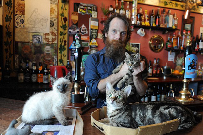 酒吧主人卢克丹尼尔斯(Luke Daniels)称这15只猫咪都出生在这里,此前,猫咪的数量一度增加到了24只,情况有点儿失控,他才不得已减少了猫咪的数量。(米粒)