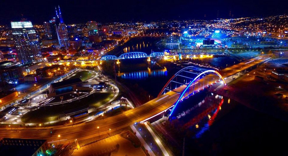 图为美国田纳西州首府纳什维尔航拍夜景。(网页截图)