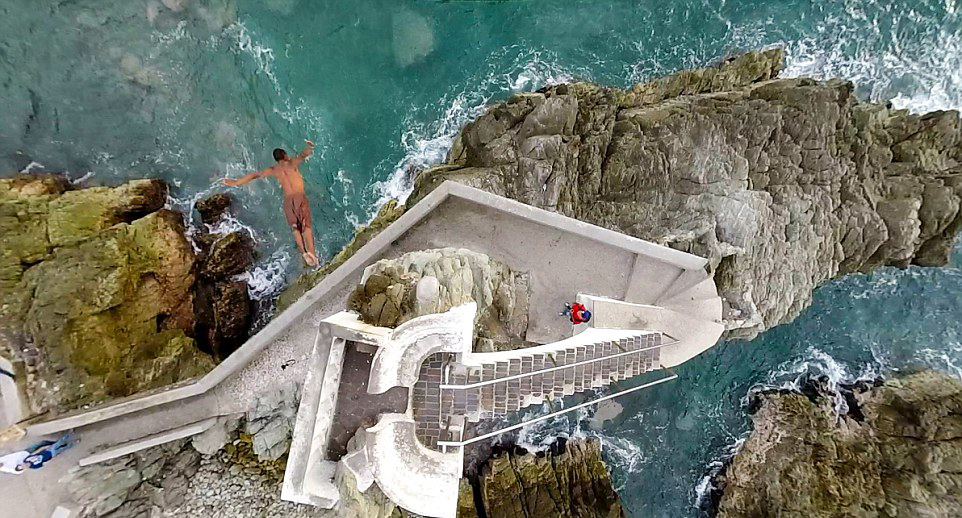 图中少年勇敢跳向大海,该作品获得大赛“最受欢迎”类第三名。(网页截图)