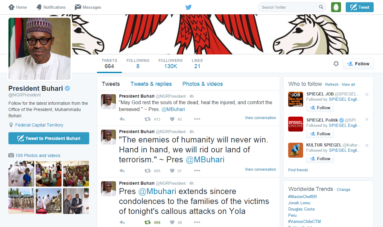 尼日利亚总统布哈里在推特上誓言将恐怖分子绳之以法