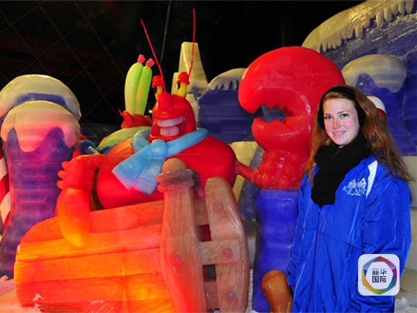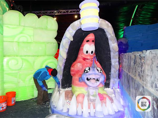 据新华国际客户端了解,今年是该冰雕团队与穆迪花园及尼克国际儿童娱乐频道第二次携手。他们以尼克国际儿童频道的动漫作品《海绵宝宝》为蓝本,以水下世界为主题,大胆设计、精心制作,将中国冰雕艺术与美国卡通动画巧妙地融为一体,深受游人青睐。