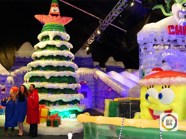 新华网11月18日电 经过45天辛勤创作,来自中国哈尔滨的31名冰雕高手将约900吨毫无生机的冰块变成了令人称奇的童话故事——“海绵宝宝”冰雕展。日前,60多件栩栩如生的冰雕作品亮相美国得克萨斯州南部加尔维斯顿岛上的穆迪花园,为即将到来的西方圣诞节带来惊喜与欢乐。