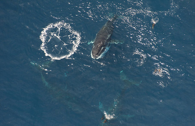 据悉,当时约有60头座头鲸从四面八方聚集到一个名叫龙虾工厂的地方附近的海域,享受磷虾大餐。美餐过后,它们又向南游去。