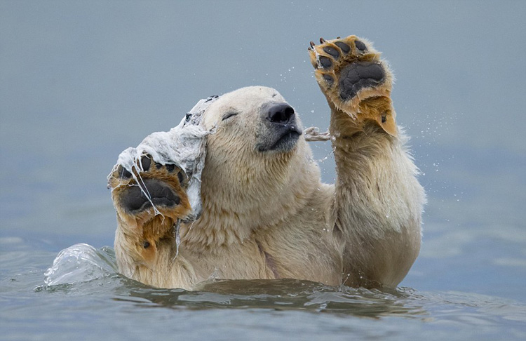 美北极熊摆弄鲸鱼尸体残骸如跳舞(高清)