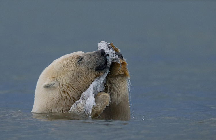 美北极熊摆弄鲸鱼尸体残骸如跳舞(高清)