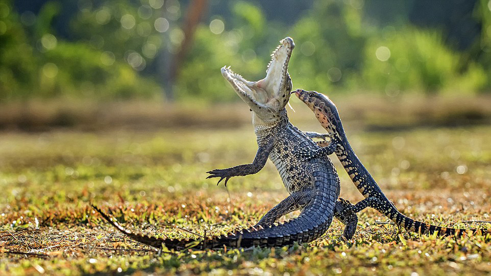 亨迪·莱伊(Hendy Lie)在印尼抓拍到鳄鱼与蜥蜴激战场景,该作品此前已经在网上广为流传。(网页截图)