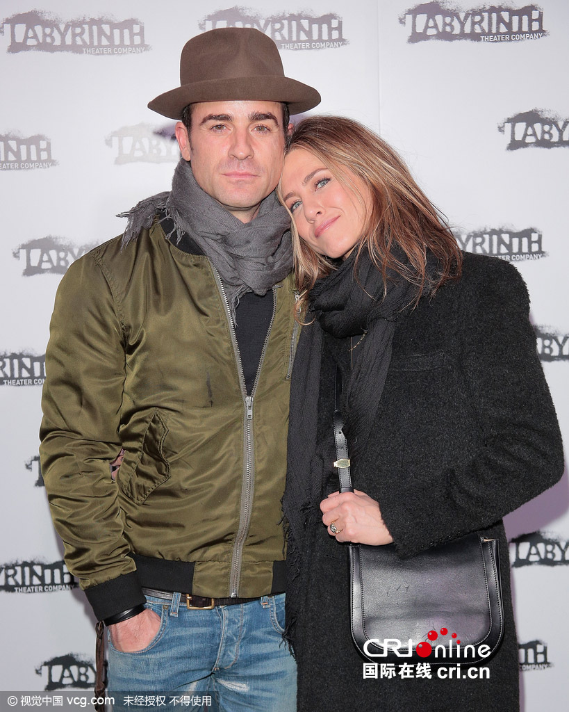 纽约当地时间11月16日,詹妮弗·安妮斯顿(Jennifer Aniston)与老公贾斯汀·塞洛克斯( Justin Theroux)恩爱现身Charades晚宴,安妮斯顿紧靠老公扮小鸟依人。图片摄影:Randy Brooke/Getty Images/视觉中国