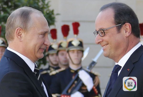 10月2日,法国总统弗朗索瓦·奥朗德(右)与俄罗斯总统弗拉基米尔·普京在巴黎会面。(图片来源:新华/路透)
