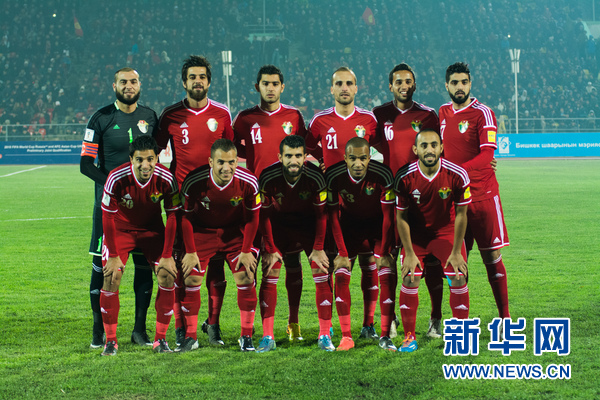 11月17日晚,约旦队首发阵容赛前合影。新华社发