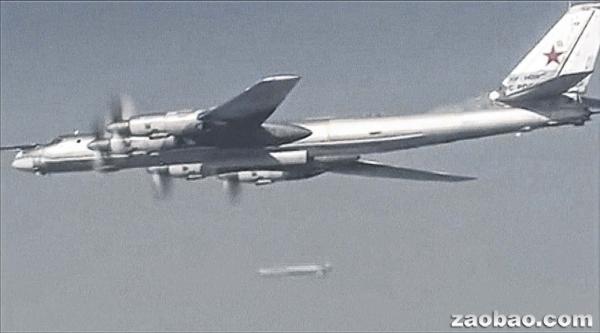 俄罗斯国防部17日发布的照片显示,俄空军图波列夫Tu-95MS型长程轰炸机在叙利亚某个地点投下炸弹。