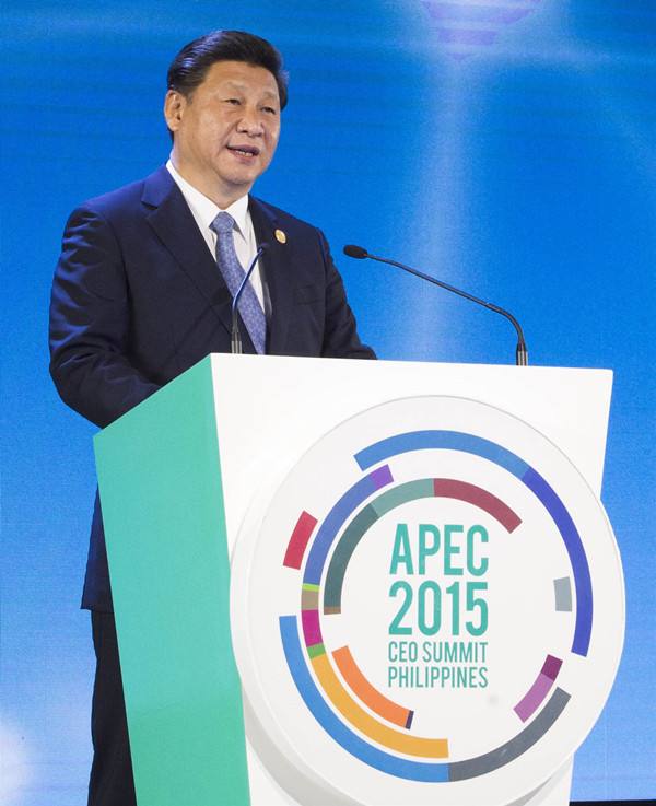 2015年11月18日,国家主席习近平在菲律宾马尼拉出席亚太经合组织工商领导人峰会并发表主旨演讲。