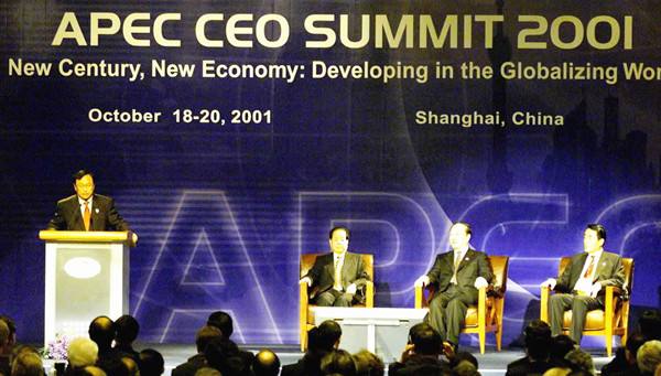 2001年10月18日APEC工商领导人峰会在上海举行。