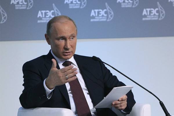 2012年9月7日,俄罗斯总统普京在APEC工商领导人峰会上讲话。