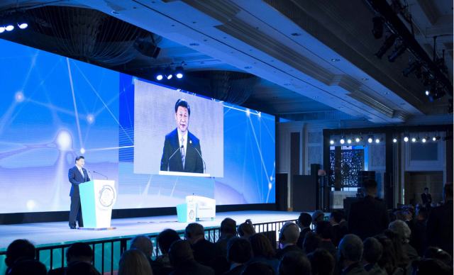 11月18日,国家主席习近平在菲律宾马尼拉出席亚太经合组织(APEC)工商领导人峰会并发表主旨演讲。(新华社记者王晔摄)