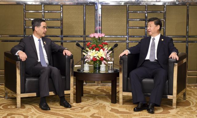 11月18日,国家主席习近平在菲律宾马尼拉会见前来出席亚太经合组织第二十三次领导人非正式会议的香港特别行政区行政长官梁振英。(新华社记者谢环驰摄)