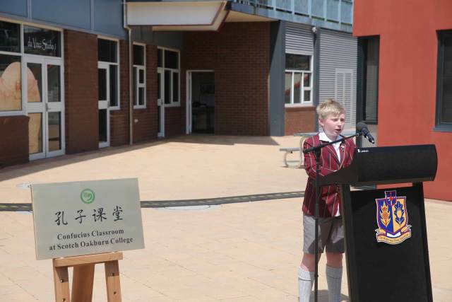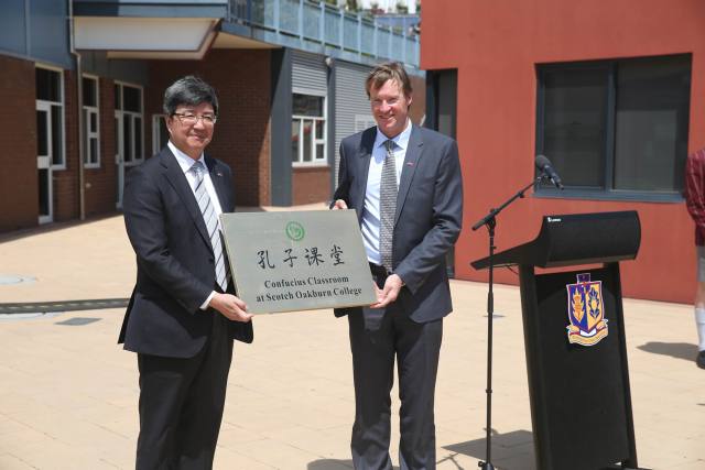 斯科奇-欧克伯恩学校校长安迪·穆勒说:“我们很荣幸能跻身全球众多开办了孔子课堂的学校之列。自从去年习近平主席和彭丽媛夫人访问以来,中澳两国关系的不断加深令我校受益匪浅,我们的学生受邀游历中国,我谨代表学校请宋昱旻总领事向中国政府转达我们对中国政府的盛情邀请和中国人民的热情款待的感激之情。孔子课堂的开办对我们的学生学习中文和中国文化至关重要,无疑这将令澳大利亚的青年受益匪浅,未来更将拉近两国人民的关系。”