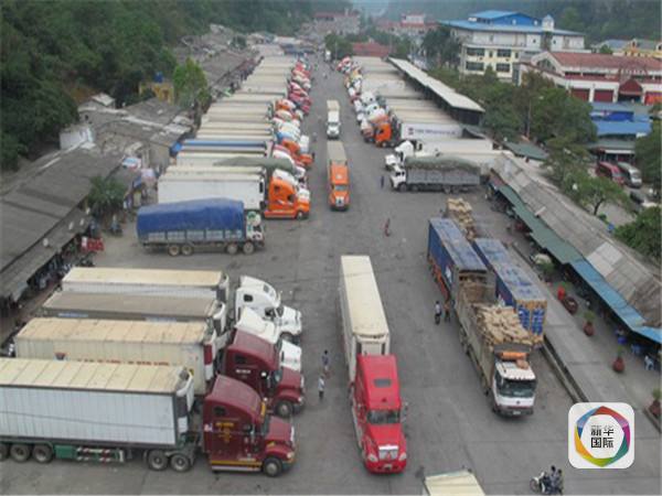 图为越中边境口岸等待通关的运输车辆。