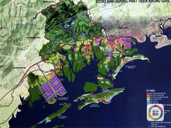 新华国际客户端了解到,越南广宁省日前公布越南政府有关芒街口岸经济区建设总体规划的批文,并表示将与中国广西壮族自治区的东兴市合作,出台关于跨境经济合作区的具体政策。根据《至2030年广宁省芒街口岸经济区建设总体规划及2050年愿景》,芒街口岸经济区北靠中国东兴,西靠潭河、云屯两县,东南临北部湾,由国际口岸区、工业区、金融中心、都市区、行政中心区、居民区及其他功能区组成。芒街口岸经济区包括整个芒街市和海河县9个乡镇,占地面积12.19万公顷,其中陆地面积为6.6万公顷,水上面积为5.5万公顷,是越南全国目前面积最大的经济区,也是越南与中国唯一拥有陆地和海上边界线的口岸经济区。