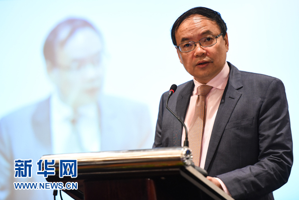 新加坡南洋理工大学南洋公共管理研究生院院长刘宏在开幕式上致辞。(摄影:王应耀)
