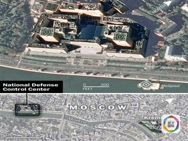 由红场出发,沿着莫斯科河畔,往西大约3公里,就是国防控制中心、即所谓的国防部新大楼。作战室分为三层,军方人员身穿不同颜色制服,每个工位上都放着带有俄军标志的瓶装水。