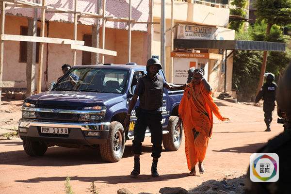 11月20日,在马里首都巴马科,一名获释的人质在警察护送下离开。