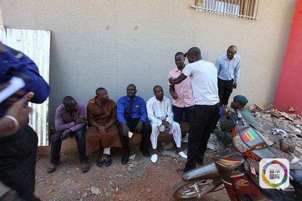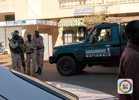 马里安全人员在首都巴马科发生枪战的丽笙酒店外警戒。