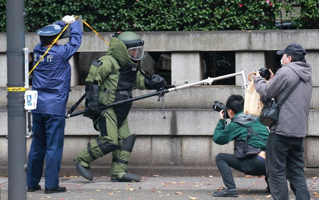 该厕所位于靖国神社南门附近,男性用单间内有电池盒燃烧的痕迹,天花板背面发现疑似金属管的物体。