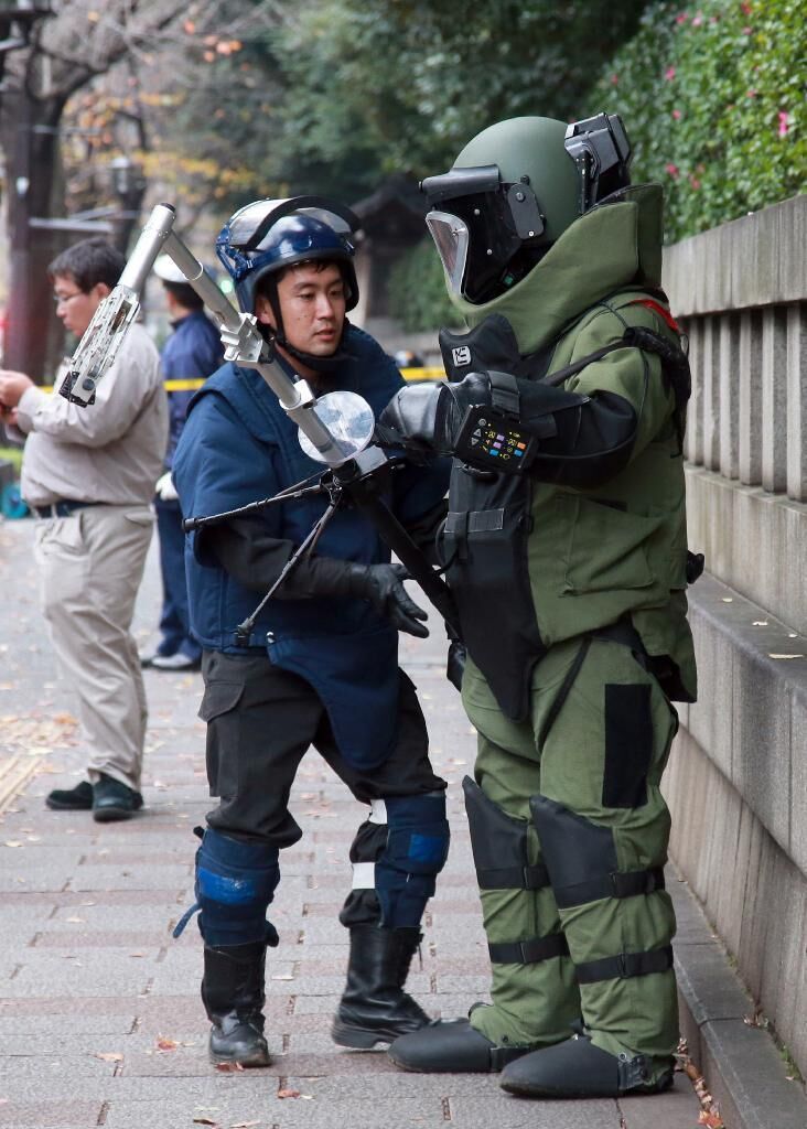 该厕所位于靖国神社南门附近,男性用单间内有电池盒燃烧的痕迹,天花板背面发现疑似金属管的物体。