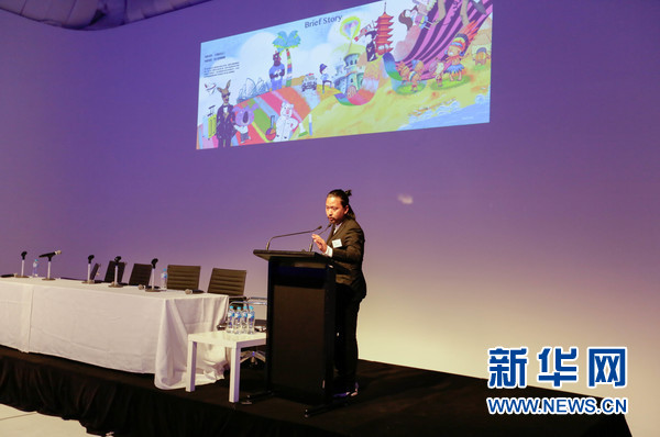 图为导演吕柯憬介绍合拍电影项目。新华社发