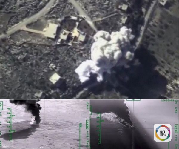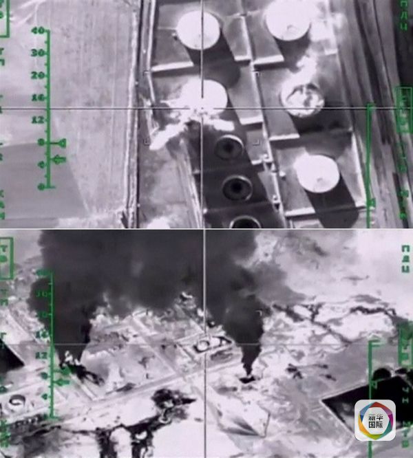 视频截图:俄罗斯空军对“伊斯兰国”武装控制的油田发动空袭。(图片来源:新华/路透)