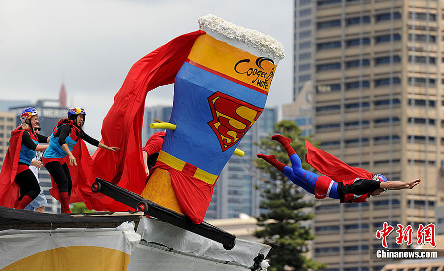 在澳大利亚墨尔本有一个叫 Moomba Waterfest ( Moomba 是土著语,其含义是“让我们一起娱乐吧 let's get together andhave fun ” )的水上娱乐项目,类似嘉年华的性质,据说是属于澳洲最大和历史最悠久( 1955 年设立)的节日行列。它包含的内容五花八门,其中有一项特别有趣,翻译成中文更加有意思,叫“鸟人大赛( Birdman Rally )。就是说有很多人身上穿着各种设备从高处跳下,试图像鸟一样飞翔,比赛谁“飞”得最远。英国皇家空军摄影师 George Abel 最早于 1971 年发明了这项活动,但他随后移民澳洲,于是这项活动在澳洲扎根发芽了,一直到现在。