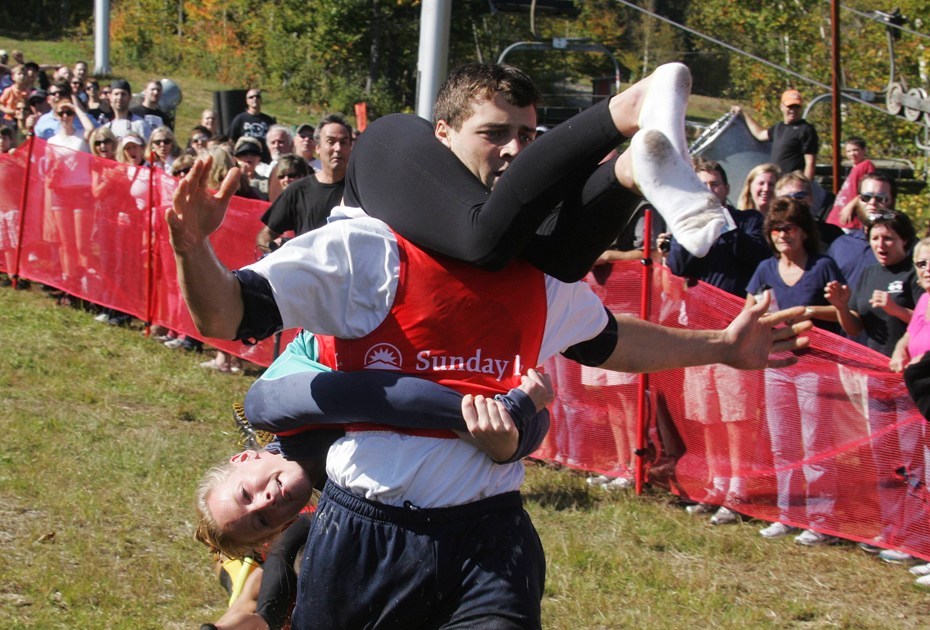 在芬兰的背媳妇竞技起源于当地古代抢婚的风俗。男方往往要到邻村“抢”女背回自家,才能赢得婚姻。今天,该比赛已扩展到世界范围。其中如每年10月哥伦布日所在周周五在缅因州举行的北美背媳妇大赛就颇为有名。在北美地区的取得优异成绩的选手将和全世界的选手一道,获得参加在桑克加维举行的世界大赛的资格。世界大赛的冠军将获得与其妻子体重一样重量的啤酒。
