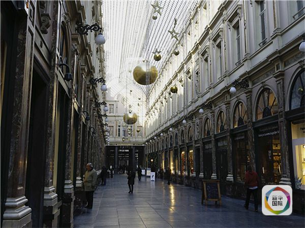 在比利时首都布鲁塞尔,著名的阿尔伯特二世购物长廊几乎没有顾客。(新华社记者叶平凡摄)