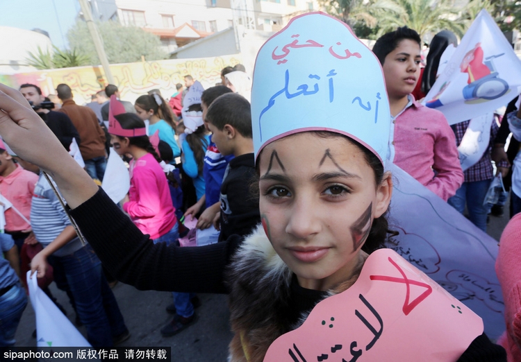 2015年11月22日讯,巴勒斯坦加沙,巴勒斯坦儿童庆祝“国际儿童日”。