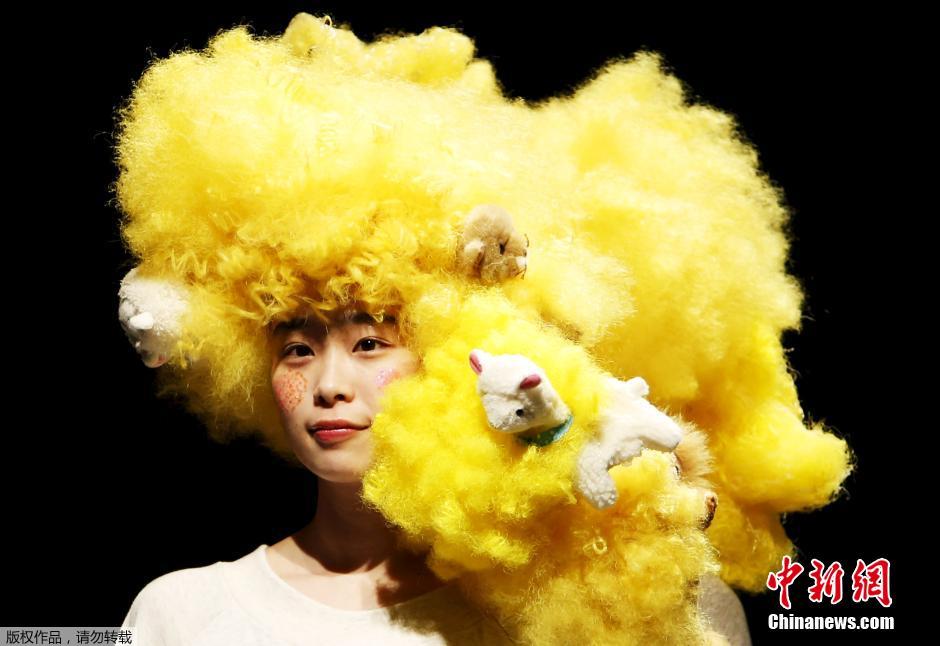 3月18日,日本东京时装周,一名模特展示设计师鹤田隆文的作品。