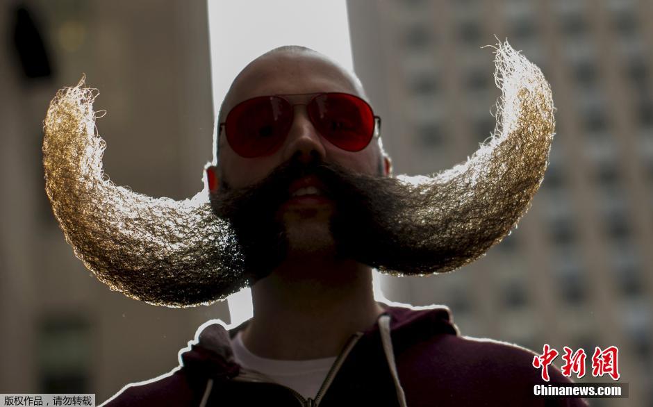 当地时间11月6日,美国2015年度胡须大赛在纽约举行,来自世界各地的300余名“胡须潮人”向外界展示了自己引以为傲的胡须,这是一名选手的胡须造型。