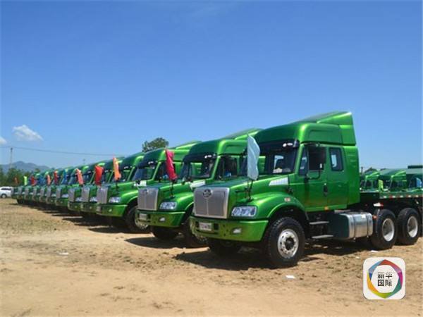 图为越南广义省豪兴公司进口的中国载重卡车。