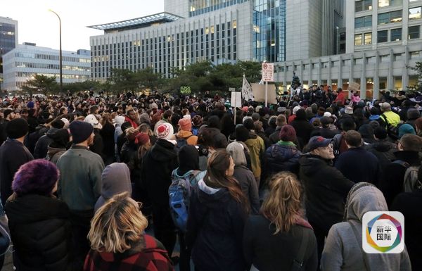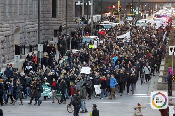 11月24日,示威人群聚集在明尼阿波利斯联邦大楼前。(图片来源:新华/美联)