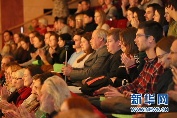 2015年11月24日,在立陶宛维尔纽斯,立陶宛各界观众在欣赏蒙古族的音乐。当日,立陶宛维尔纽斯大学孔子学院举办“草原之歌”音乐会,来自内蒙古的蒙古族歌手为立陶宛观众带来了长调、呼麦、马头琴等原生态的音乐和舞蹈表演。演出获得立陶宛各界一致好评。新华社记者卜鹏摄