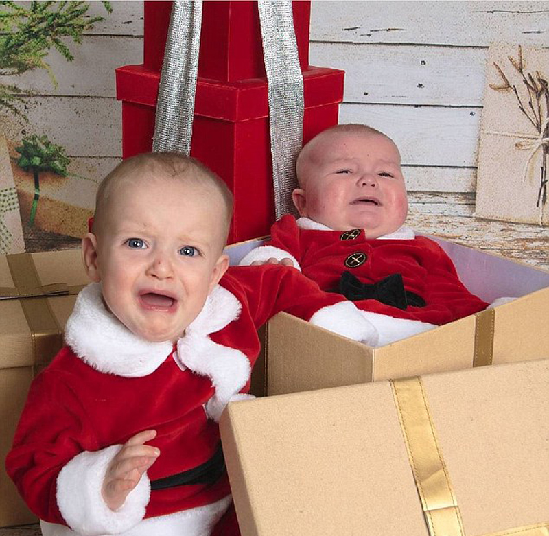 这两个圣诞宝宝哭成了一团。(网页截图)