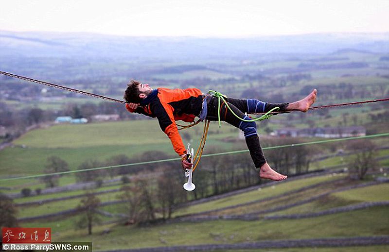玩的就是心跳:冒险家120米高空走绳吹小号