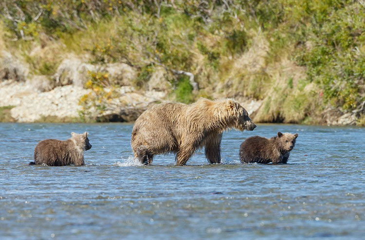 据英国《每日邮报》11月25日报道,近日,48岁的摄影师舍费尔(Schaefer) 来到美国阿拉斯加州,抓拍到棕熊宝宝跟着妈妈学习觅食的场面。照片中,在卡特迈国家公园,两只棕熊幼崽跟着妈妈学习捕鱼。他们看过妈妈捕鱼后,很快就掌握技巧,轻松捉到鲑鱼。