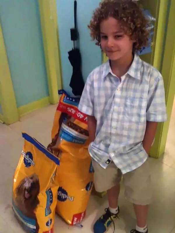 这个小男生用自己的零用钱买了狗粮给动物庇护所。