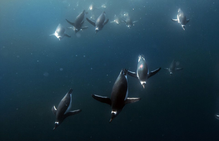 摄影师南极深海拍摄企鹅震撼下潜觅食(组图)
