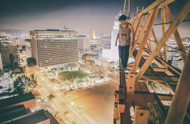 这位名叫丹尼尔(Daniel Malikyar)的摄影师是加州查普曼大学的一名在校生。丹尼尔经常喜欢攀爬至高耸入云的摩天大厦顶端,以十分冒险的角度拍摄许多令人大呼过瘾的城市风景照。