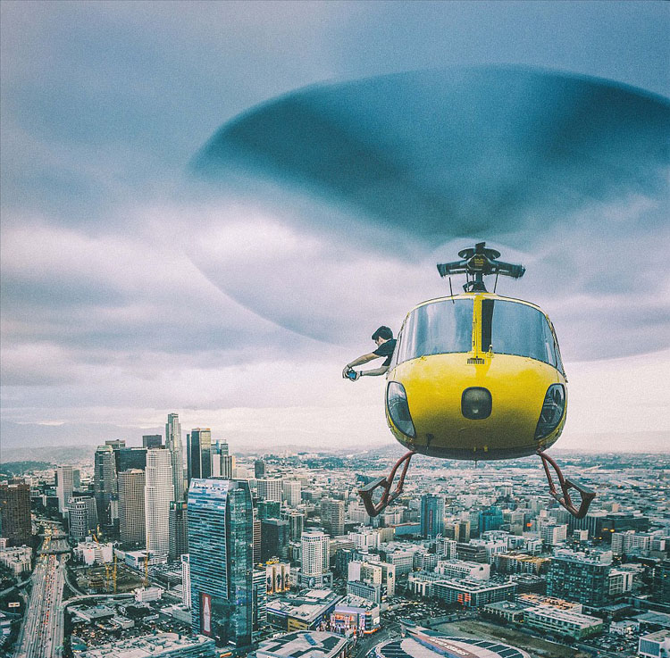 丹尼尔甚至会乘直升机,双脚悬空,探出半个身子,只为寻求最佳的拍摄角度。